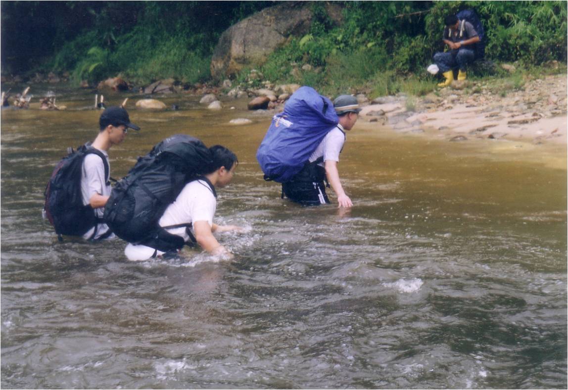27 April 2001 Ulu Sepat, standing at 2161m, is 7th highest mountain in Peninsula Malaysia. According to our guide, Forest Gan, we would be taking a new route for this trip. It certainly seemed to be the case as the Orang Asli guides were creating new trail as we trek towards the summit. Located in the Titiwangsa (main) range, it receives a significant volume of rainfall annually. On this trek, it rained daily especially in the late afternoon. The starting point for our trek was near Gua Musang. From there, it was a 4hrs ride by 4-wheel drive to the starting point at a Orang Asli village located deep in the mountains. Most part of the ride through the mountains was on logging trails which were well-maintained as logging were still carrying out in the region. However, once the vehicle entered the trails which were no longer in use, the road condition deteriorated. In fact, the vehicles were stuck in the mud on one occasion and we had to push it free. At the Orang Asli village, we could see that they seldom have visitors as the children look at us with great curiosity. It was also at this village where Forest Gan engaged two Orang Aslis as guides to bring us to the mountain. The trek was certainly challenging and full of surprises. About 2 hours into the trek, we have to cross a wide river where the water level reached our waist level. For one-third of the trek, we were walking on old logging trail. Part of the logging trail has been abandoned for so long that erosion formed deep gullies on it. As we trekked deeper into the mountains, the Orang Asli guides traverse across ridges where there were rivers and streams at the bottom of the ridge. However, that also meant there were a lot of ascent and descent. As this was a new trail, there were really no trails to follow at all towards the last third of the journey in the forest. The Orang Asli guides have to use parangs to hack their way through the thick vegetations. Despite walking and clearing a path, they were still moving at a faster pace than us. During our descend down the mountain, we lost sight of them and have to rely on following the trail of chopped plants to lead us to the campsite. Probably due to the high rainfall, the vegetation at the summit of Ulu Sepat was very thick and reached up to head level which blocked out any view. Moreover, there was a complete white-out as the clouds moved in and a light drizzle. A point of interest was there were evidences of heavy elephant traffics nearer to the summit of this mountain. Elephant dung were everywhere along the trail and some looked fresh. Near to thee summit, the trail was very muddy, probably elephant dung mix with water. Ulu Sepat, like many other mountains found in Titiwangsa range is not meant for the novice to Peninsula Malaysia mountains. Good fitness level and mental strength is required to tackle the mountain as not only are we required to carry heavy loads and make long, tiring treks, the daily rain and sandflies at the campsites would make life quite miserable. However, there are certainly some personal satisfactions and valuable experience gained from such a trek. One thing for sure, trekking through virgin forest, making new path and experiencing the isolation of the region are something that very few treks can offer. |