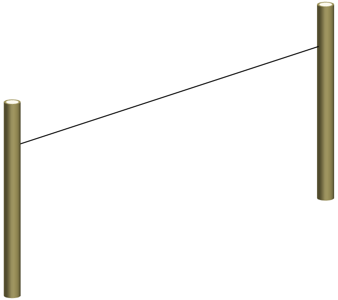 In a forest, two trees suitably space apart may be used as the support to tie the ridge line. If there are no suitable trees, poles or long branches may be used as substitute although for added stability, they should be rammed into the earth. An alternative is to form a standing frame as shown below.